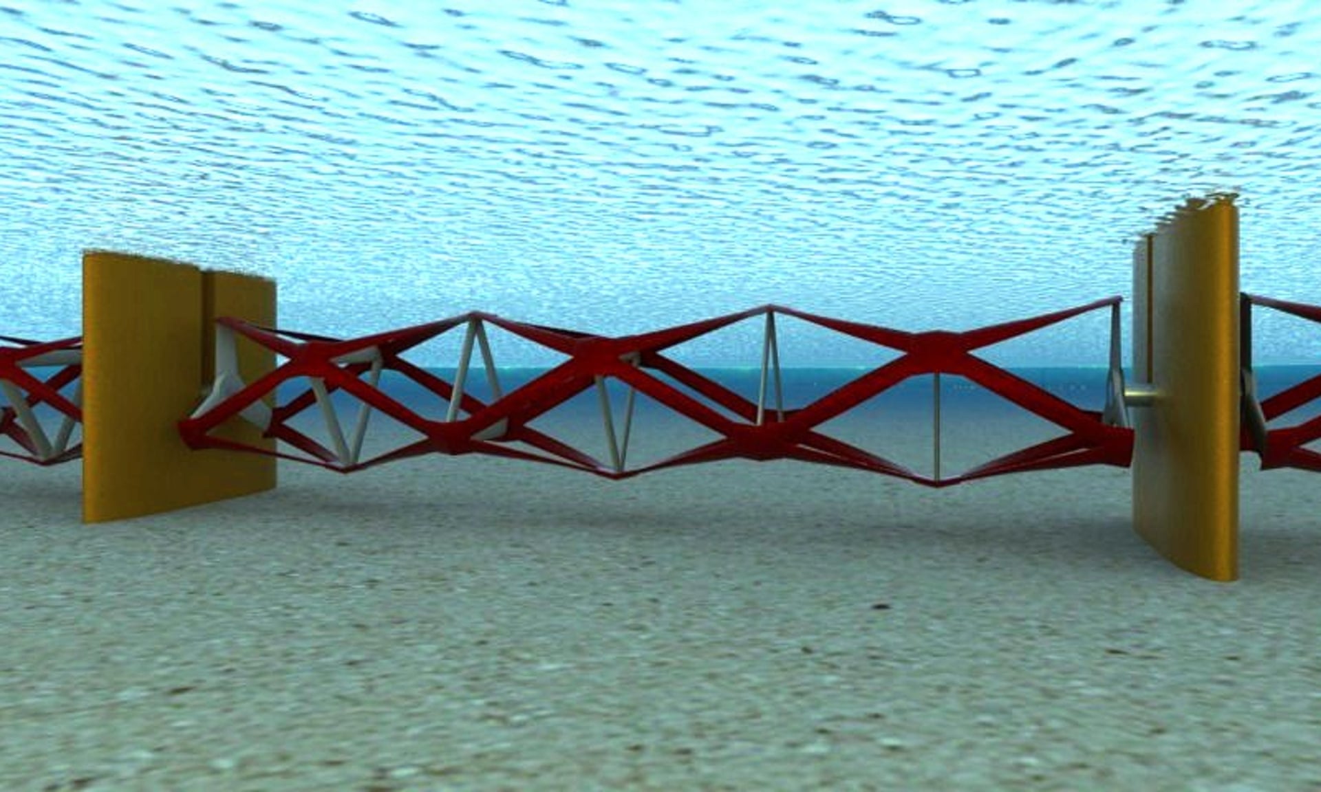 Because the turbines sit horizontally beneath the surface of the sea, they can be sited in water shallower than the 30-metre depth typically required by current designs. And because the water is slow-moving, the company says, fish can safely avoid the turbines’ blades.